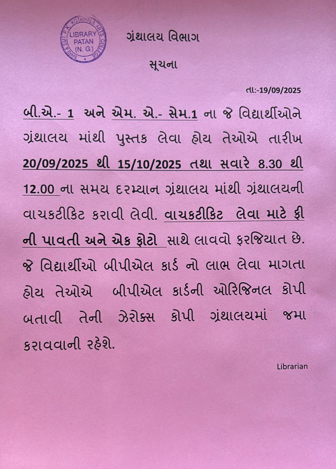 પરીક્ષા નો કાર્યક્રમ B.A SEM-1.