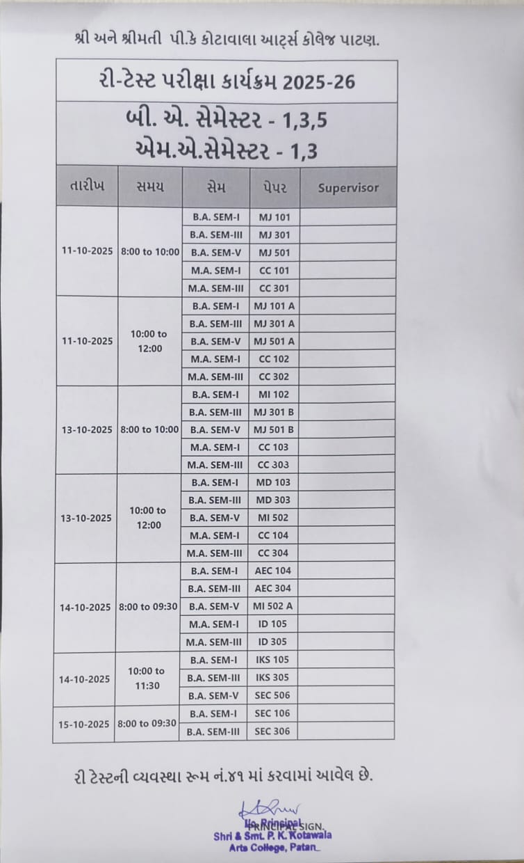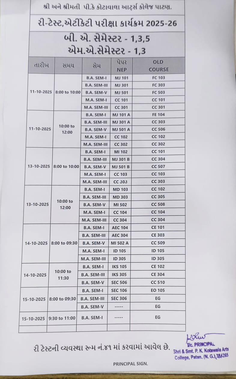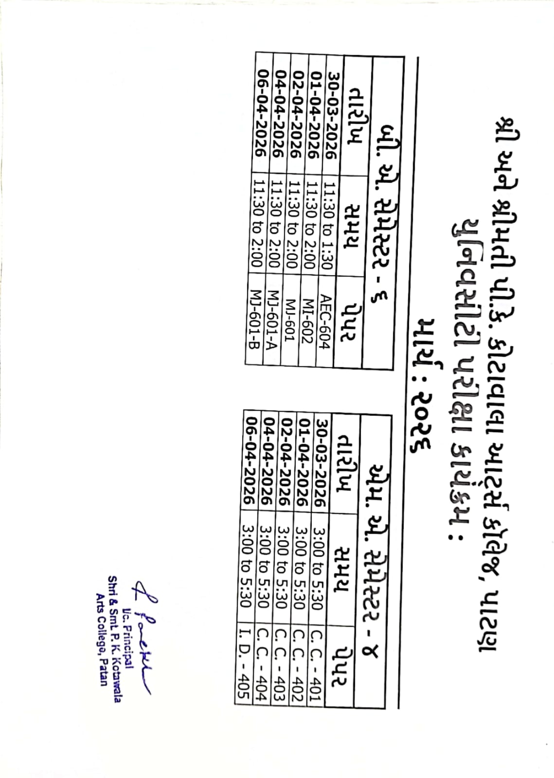 પરીક્ષા નો કાર્યક્રમ B.A SEM-5.