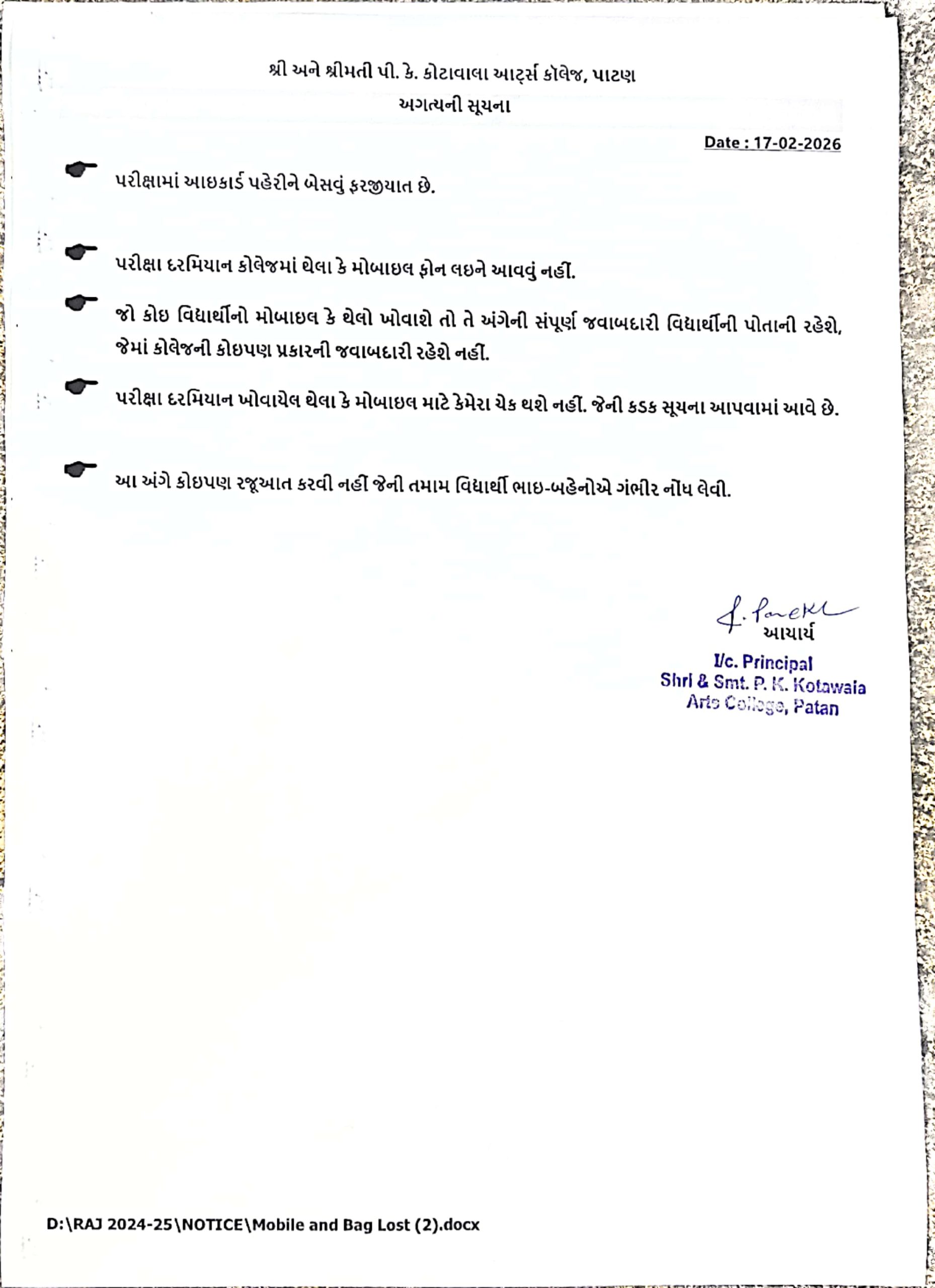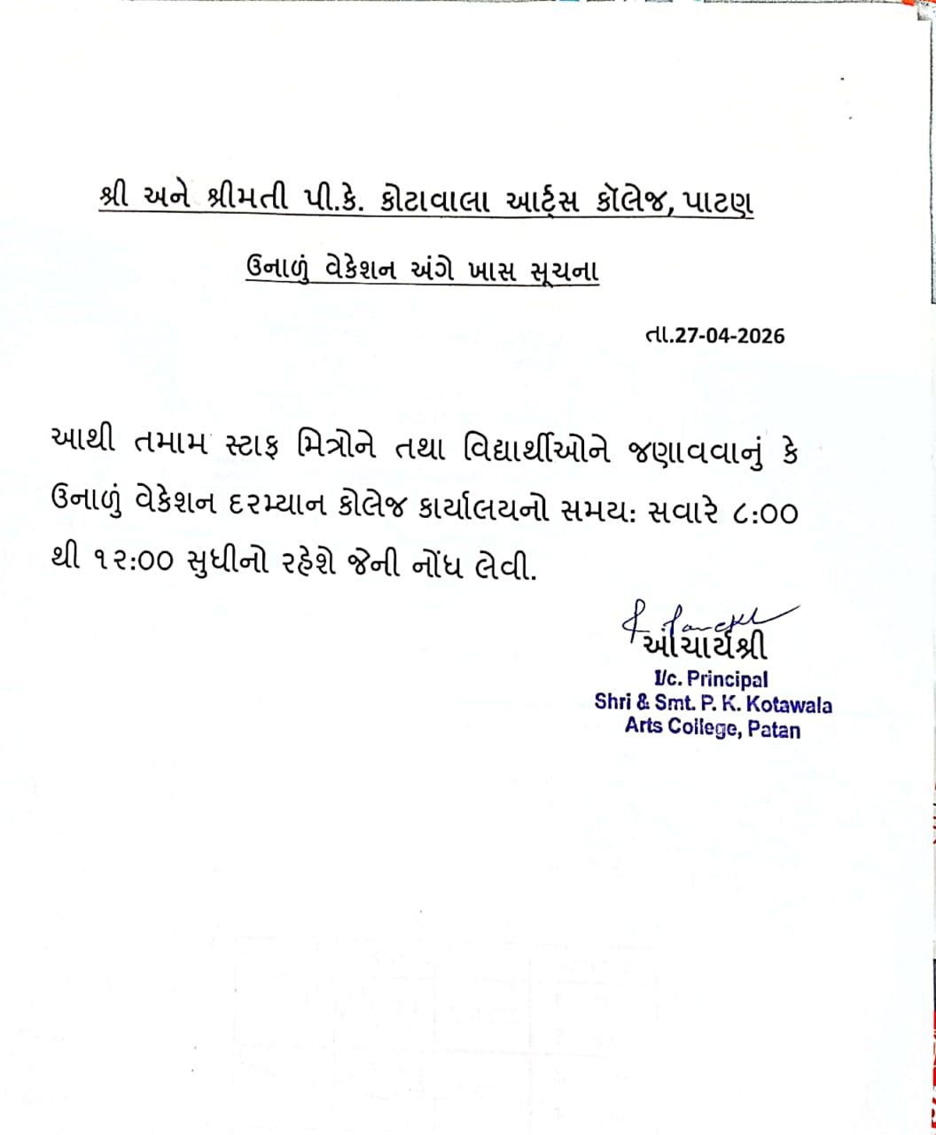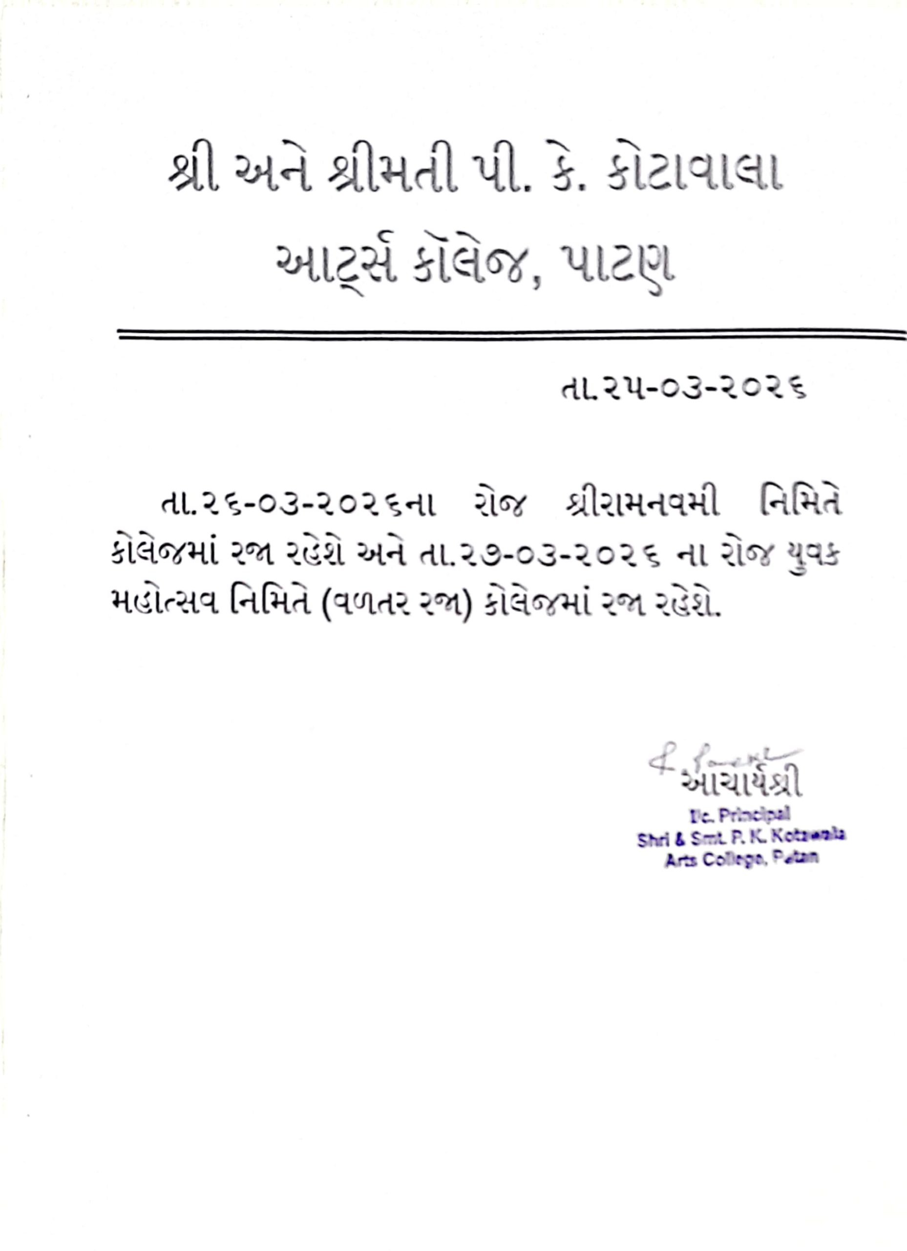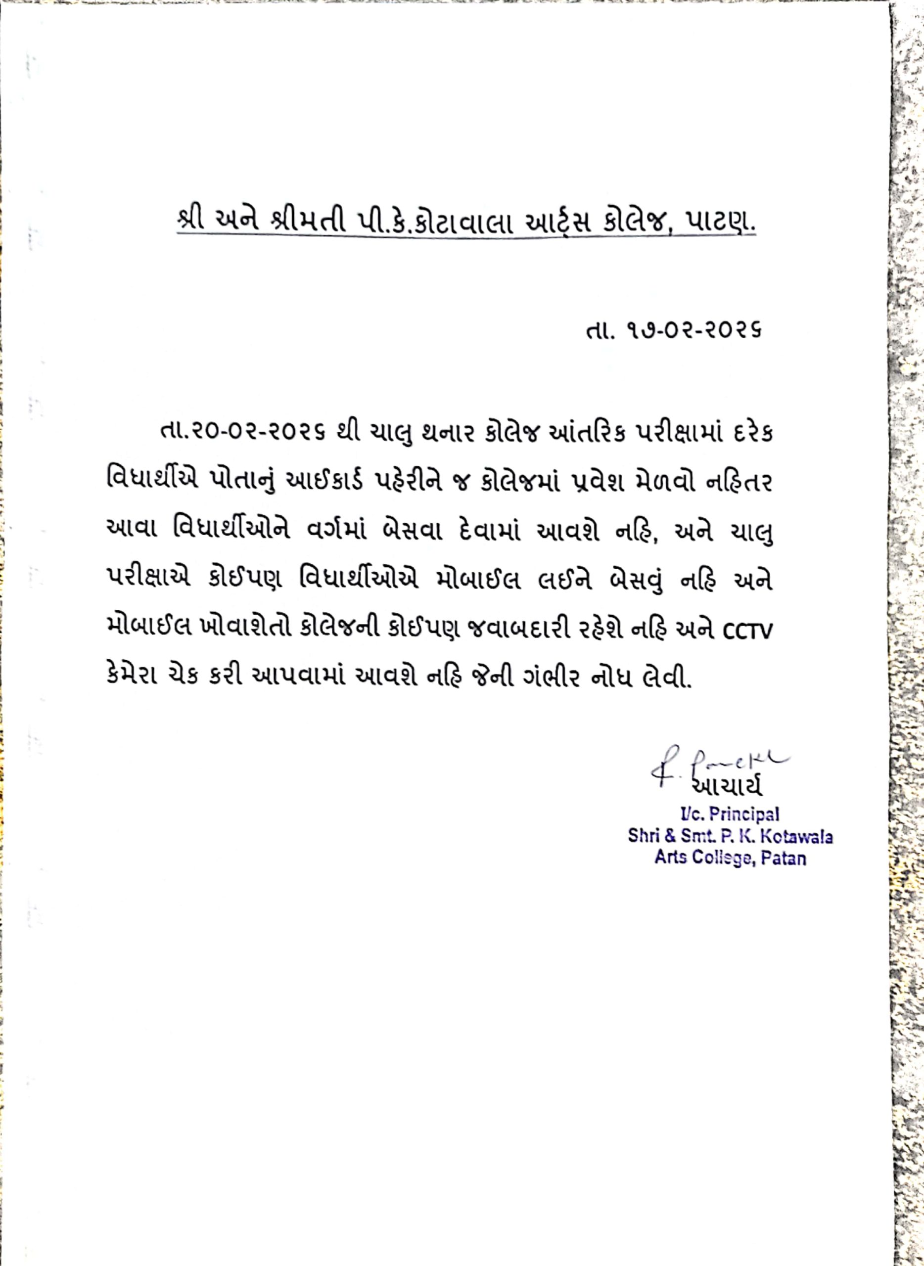 બહાર ની યુનિવર્સિટી માંથી આવેલ વિધાર્થીઓ માટે સૂચના.