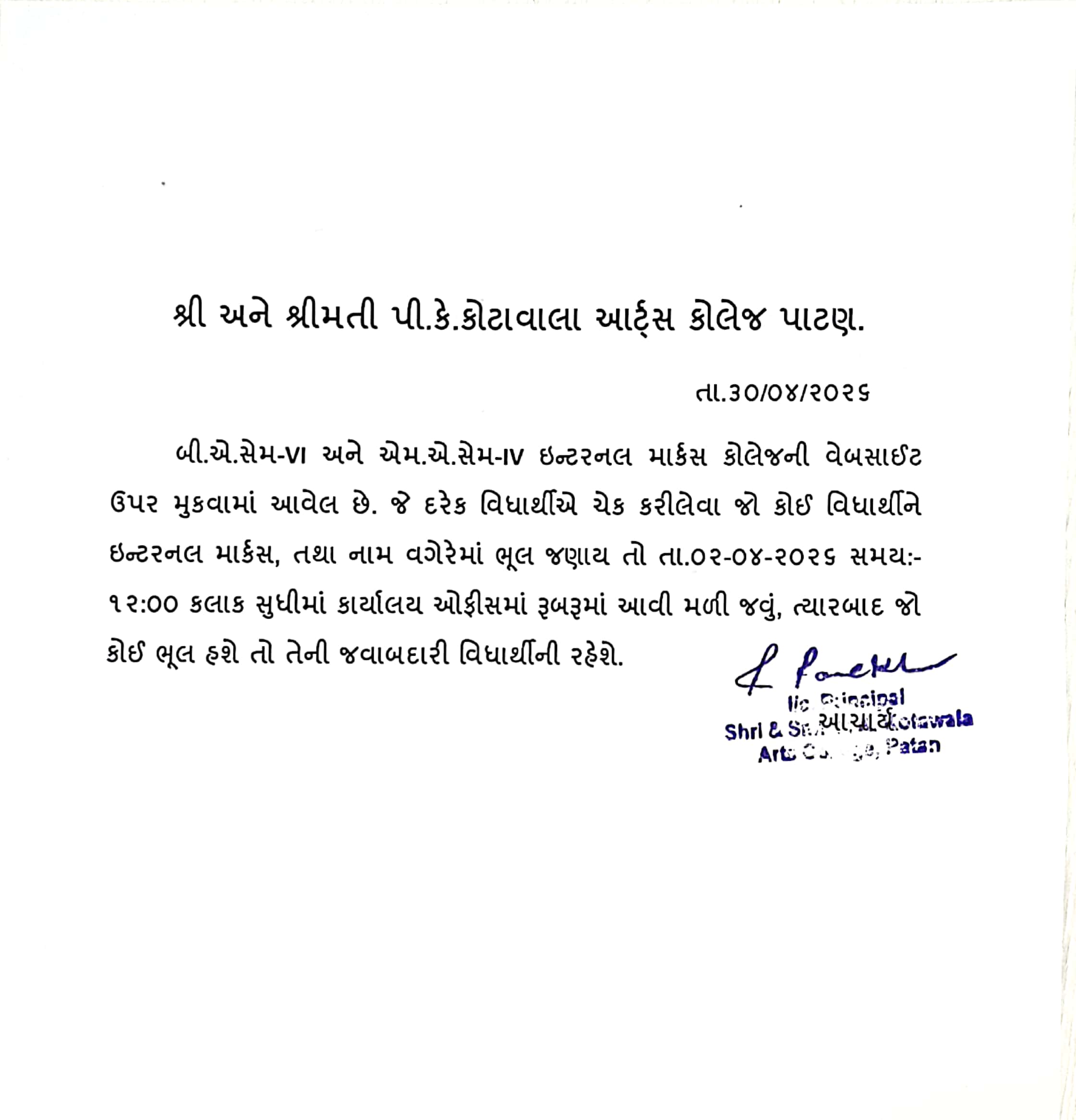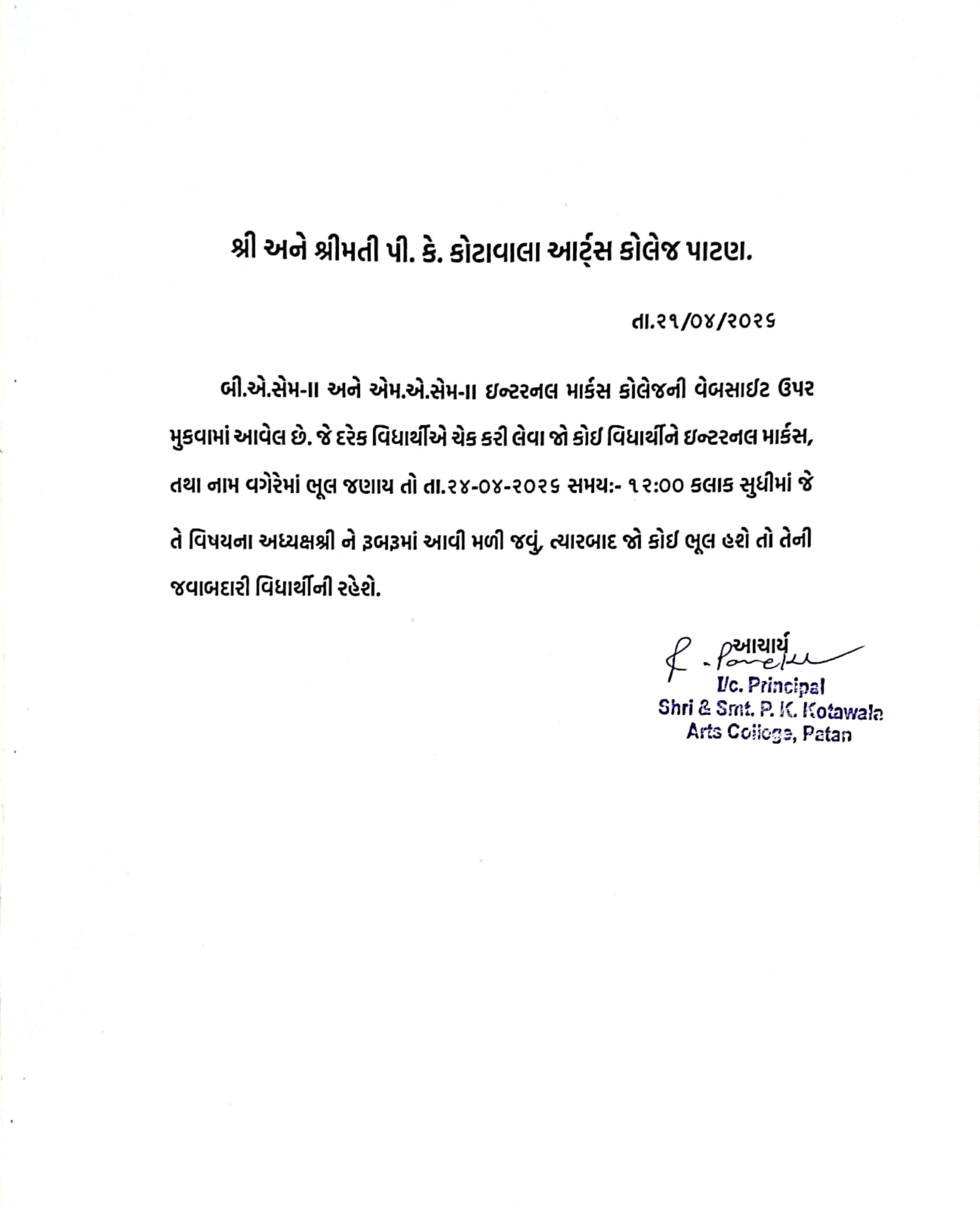 M.A Sem-1 ના વિધાર્થીઓ માટે ની સૂચના .