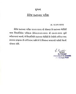 ઇન્ટર્નલ પરીક્ષા ની સૂચના.