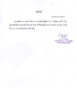 B.A SEM-4,6 B.P.A SEM 4,6 અને M.A SEM 4 ના પરીક્ષા ના ફોર્મ અંગે ની સૂચના